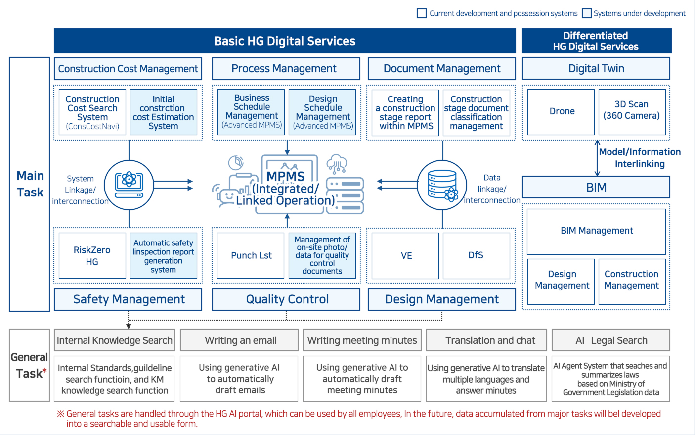 HanmiGlobal AX(AI Transformation) Department was established in December 2019 as a dedicated department for digital transformation. It has since been applying digital tools to over 100 domestic and international construction management projects. As of 2025, the department was renamed the AX(AI-Driven DX) Department to accelerate the transition to AI-driven digital PM services.
