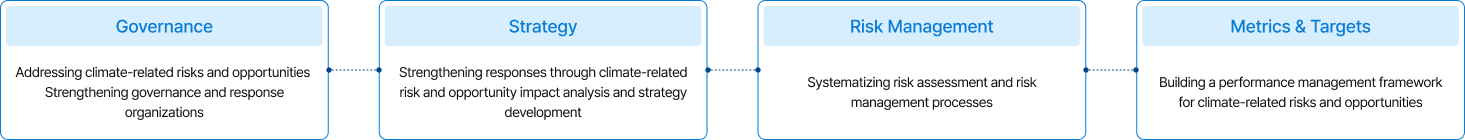HanmiGlobal follows the recommendations of TCFD (Taskforce on Climate Related Financial Disclosure) to conduct climate scenario analysis and publicly disclose the climate change response process in line with our information disclosure framework.