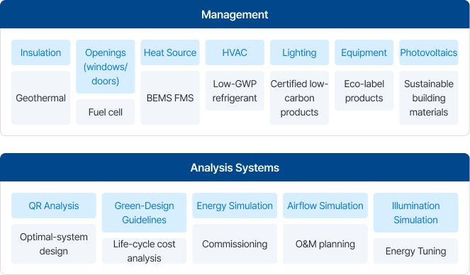 As a participating member of the U.S. Green Building Council (USGBC)*, HanmiGlobal offers full scope solutions for LEED* certification, Korean green building ratings, and building energy optimization based on advanced energy simulation and optimization technologies. The company has delivered numerous projects that integrate building energy management systems (a prerequisite for both LEED certification and Zero Energy Buildings) and operational phase energy consulting, giving it unmatched technical depth and field experience. From the earliest planning stage, HanmiGlobal sets out an energy reduction roadmap, provides technical reviews and design guidelines, and then supervises eco-friendly construction to ensure the original sustainability intent is achieved.