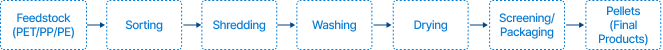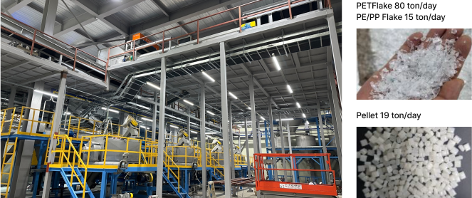 The plant processes 135 t per day of waste plastic (115 t per day of PET bales and 20 t per day of PE/PP bales). Drawing on its specialized engineering capabilities in resource circulation facilities, HanmiGlobal participated in every project phase, including design, construction, and operation, to maximize the efficient recycling of single-use plastics. Backed by proven state-of-the-art equipment and the company’s accumulated expertise, the facility was planned as an upgraded next-generation plant that incorporates every “lesson learned” from earlier resource circulation projects.