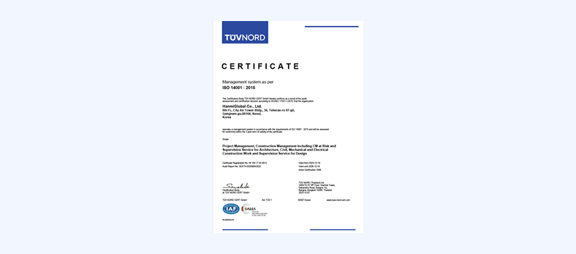 HanmiGlobal engages in a wide range of projects that advance Korea’s 2050 carbon-neutral roadmap, including green upgrades of urban, spatial, and life service infrastructure, deployment of low-carbon/distributed energy, and development of an innovation ecosystem for green industries. Because construction inevitably disturbs the natural environment, conflicts between preservation and development can easily arise. A system that respects environmental values throughout every project phase—planning, design, construction, operation, and maintenance—is therefore essential. As an engineering company that delivers development, design, construction management, and EPC services, HanmiGlobal prioritizes eco-friendly construction and contributes to society’s climate response goals.