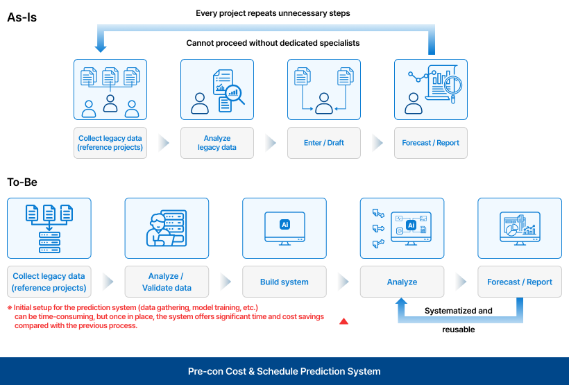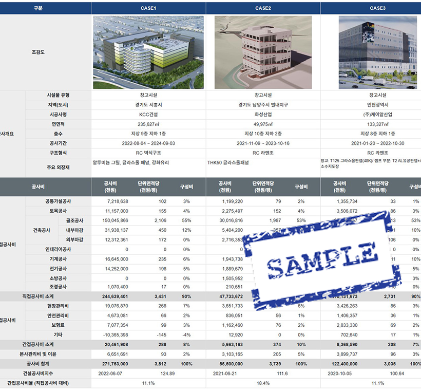 ConsCostNavi is a cost analysis platform that evaluates the adequacy of bid prices using real project cost data and offers standardized cost estimating criteria. The system enables more efficient project cost control and supplies clients with reliable, data-driven construction cost information.