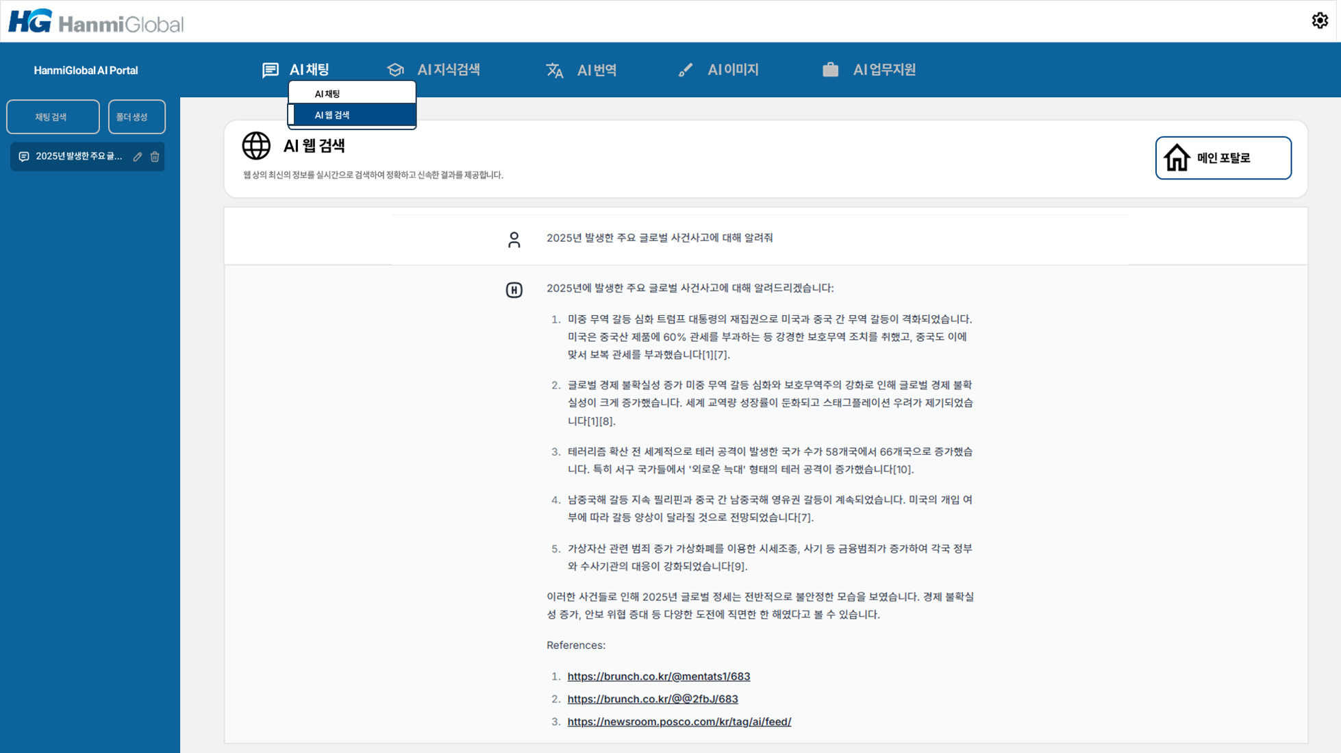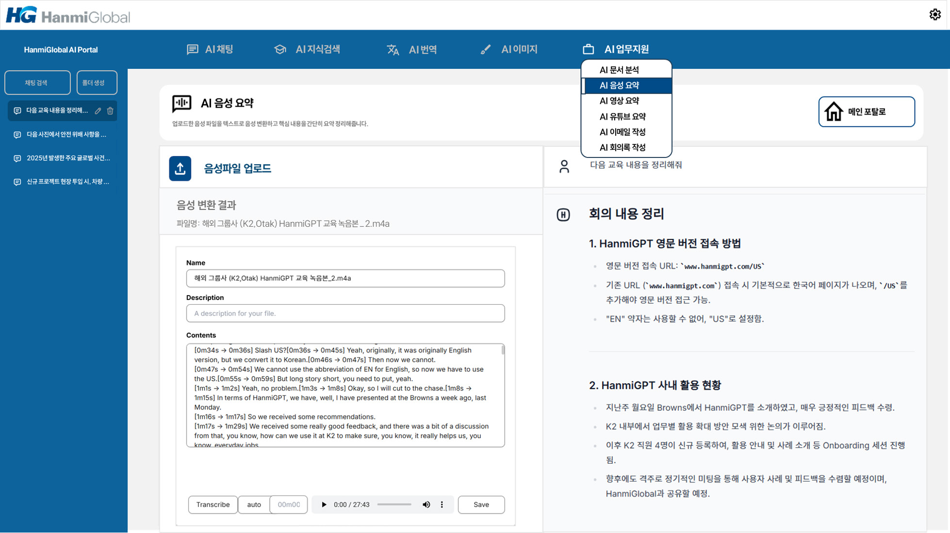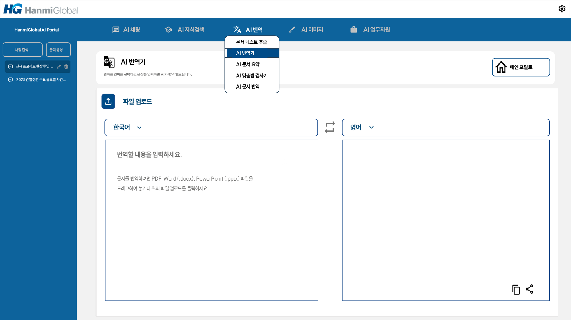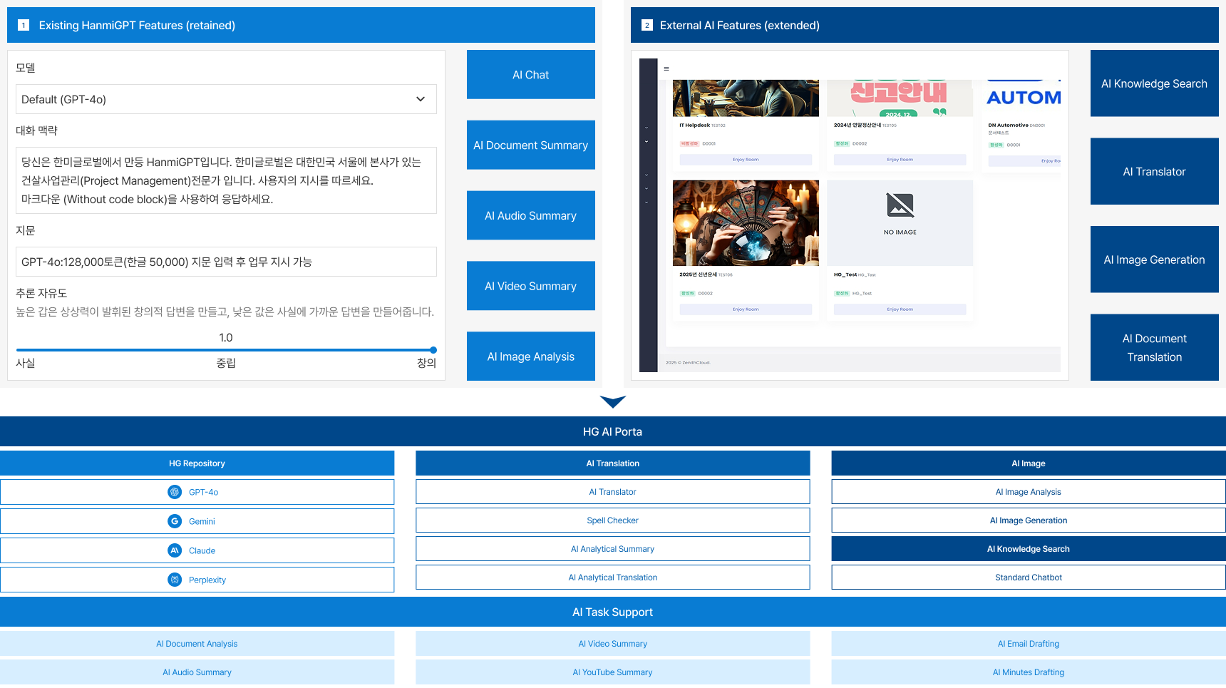 The portal delivers the full feature set of HanmiGPT plus additional AI utilities, all accessed through one interface.