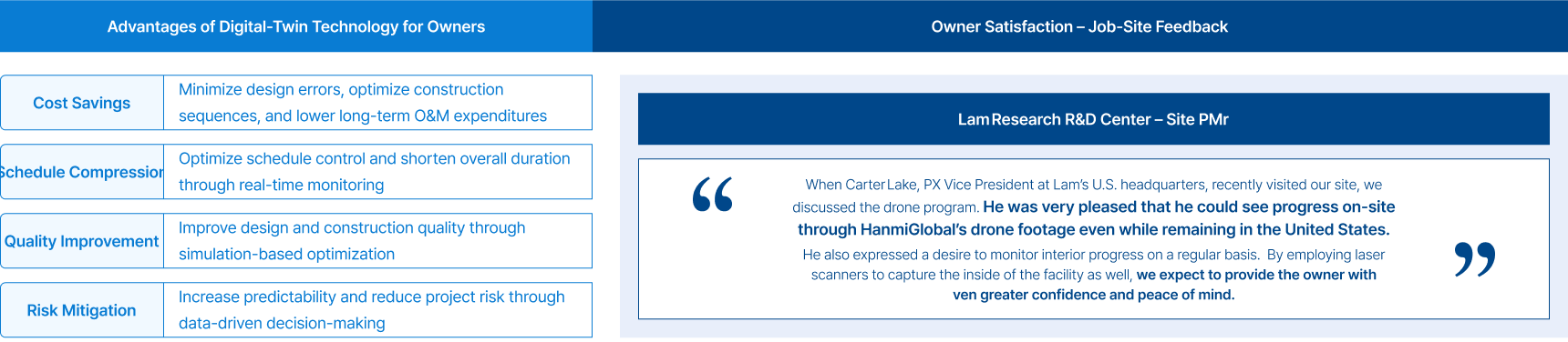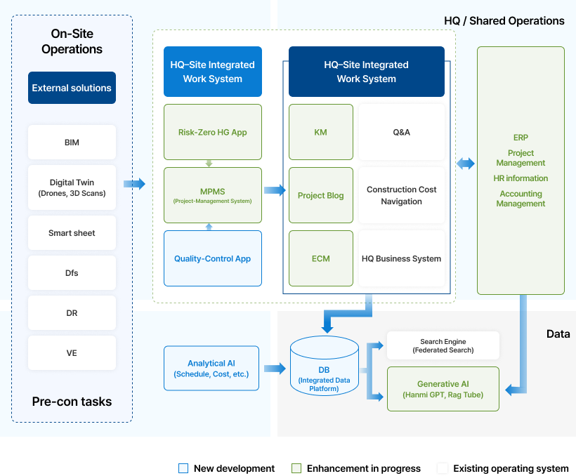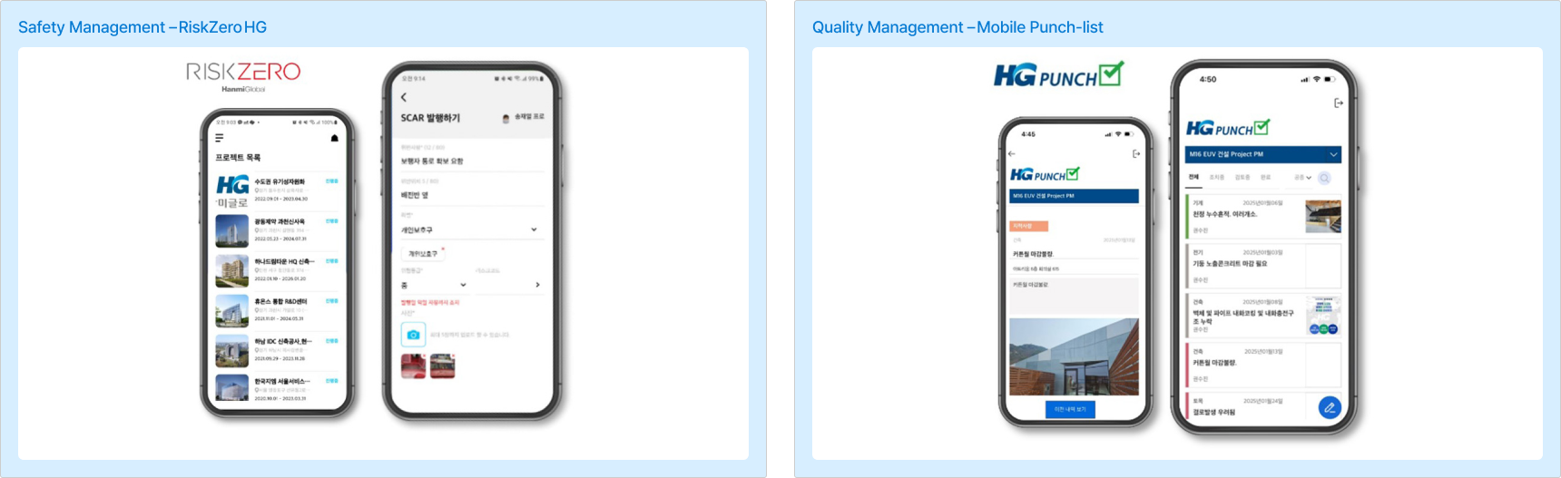 To accelerate the company’s AI transition, HanmiGlobal conducts both on-site and online programs covering our proprietary platform modules, project management support tools, and other AI and digital solutions. This blended approach ensures that field teams can immediately put new technologies into practice.
