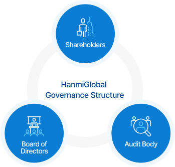 HanmiGlobal strives to build an advanced corporate governance system that raises long-term shareholder value while safeguarding the balanced interests of all stakeholders. Centered on shareholders, the Board of Directors, and the audit body, the company is working to entrench a Board-led model of responsible management.